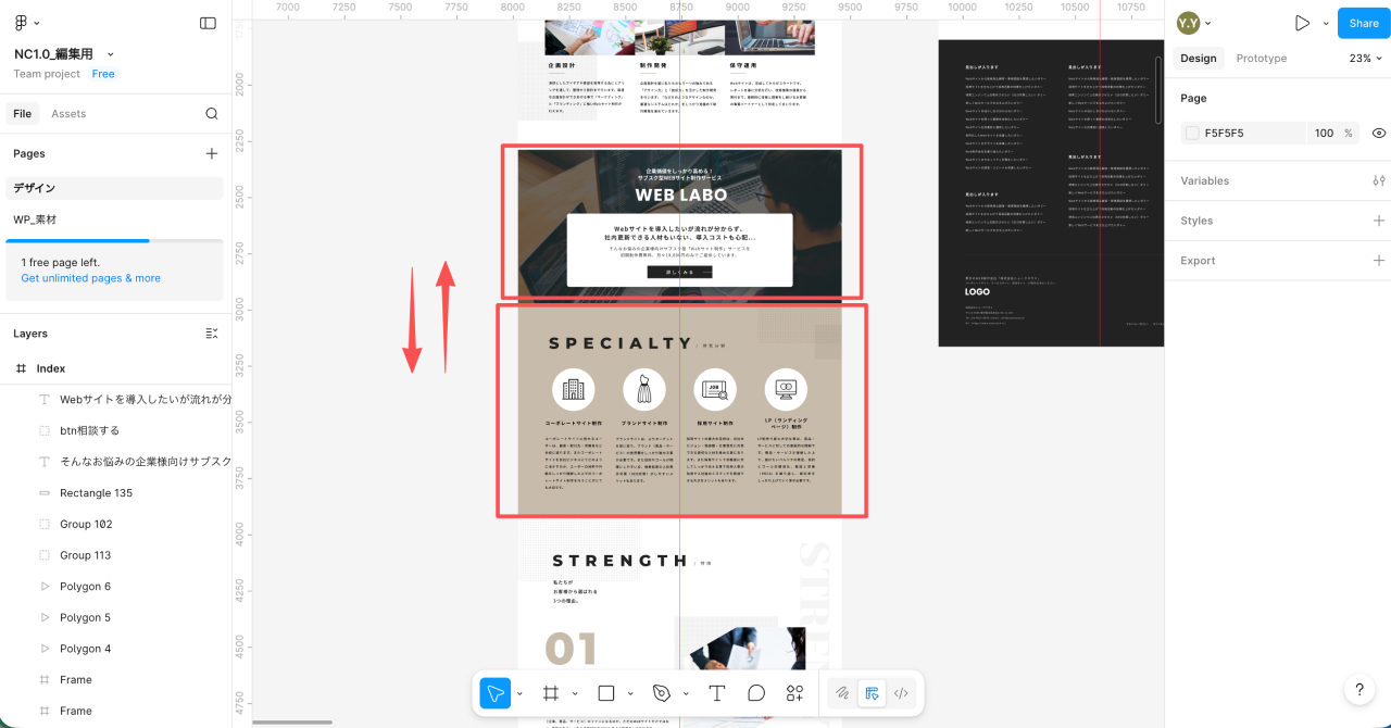 スマホサイズでWFを設計する際は、まずauto layoutを作成し、その中に各コンテンツを生成すると良いかと思います。最初の段階では工数が少し多いかもしれませんが、後々のコンテンツの入れ替え、削除などの作業効率が大幅に上がります。